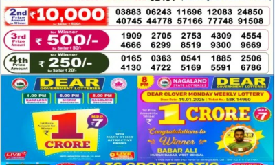 Nagaland, March 30, 2026: The results of the Dear Clover Monday Weekly Lottery, conducted by Nagaland State Lotteries, have been officially announced. The draw was held...