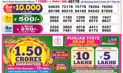 Sikkim, March 31, 2026: The results of the Dear Prestige Tuesday Weekly Lottery, conducted by Sikkim State Lotteries, have been officially announced. The draw was held...