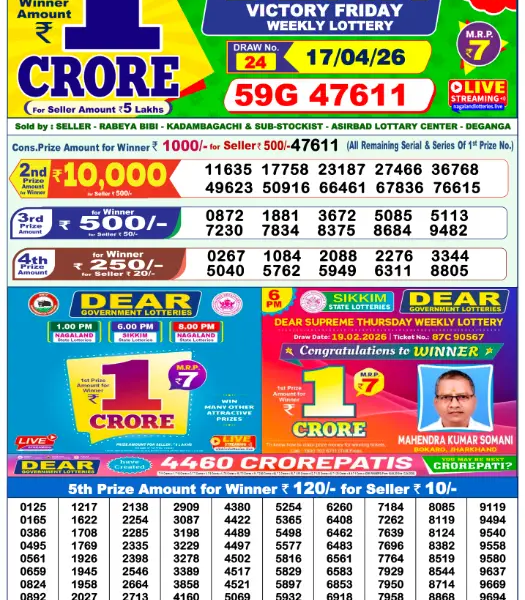 Luck smiled brightly on a resident of Birbhum after he won a massive 1 crore first prize in the Dear Rise Monday Weekly Lottery, part of...