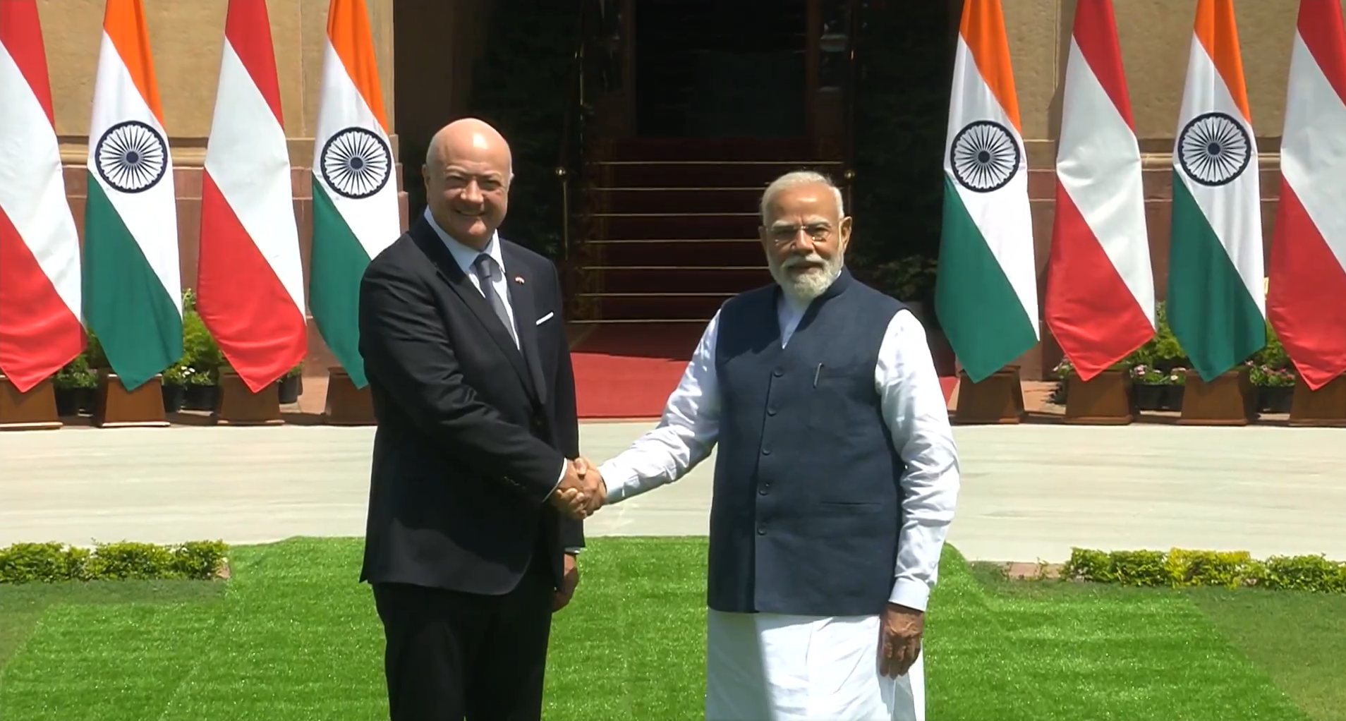 Prime Minister Narendra Modi is holding talks with Austrian Chancellor Dr. Christian Stocker in New Delhi. Both leaders will exchange views on regional and global issues of mutual interest, including cooperation in multilateral fora, during their meeting. Earlier today, Mr Stocker and his wife, Gerda Stocker Legenstein, laid a wreath paying tribute to Mahatma Gandhi at Rajghat.